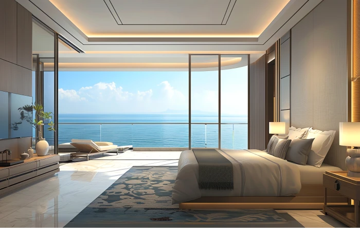 A Suíte Oceano Azul Luxo lll oferece uma experiência única à beira-mar, perfeita para quem busca relaxamento e sofisticação. Com uma varanda privativa que oferece uma vista panorâmica do oceano, você poderá desfrutar de belos amanheceres e pores do sol, enquanto sente a brisa suave do mar. O ambiente espaçoso combina um design moderno e aconchegante, pensado para proporcionar o máximo de conforto aos nossos hóspedes.